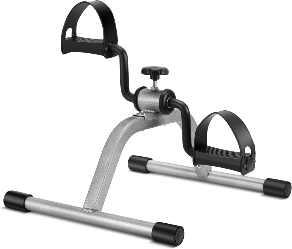 If you’re looking for something more economical or do not have as much space there are these pedal exercise equipment that you can use under your desk if you work from home or with any chair. They do not take up much space and are only $27.99. You can adjust the resistance and use these for both an arm and leg work out.