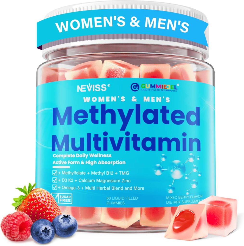 Now if you prefer a gummy vitamin, I recommend Neviss Methylated multivitamin for men and women. This one delivers similar benefits in a liquid form encapsulated in a chewable gel. I’ve tried both, I prefer the capsules but I have friends that find it easier to take gummy vitamins because they’re more delicious. These are currently on sale for $21.45 on Amazon.
